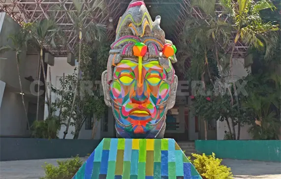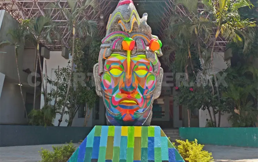 La Cabeza Maya, que se localiza en la avenida central, en la entrada de la colonia Xamaipak de esta capital, siempre ha sido una referencia para ubicarse en la ciudad, por lo que esta semana fue tema de conversación y discusión entre usuarios de internet, que reaccionaron ante una intervención artística que se le hizo al monumento.