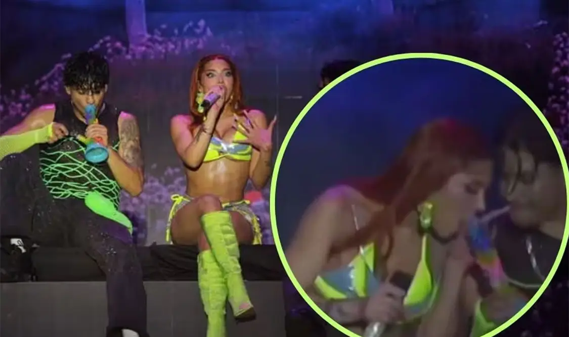 El pasado 14 de febrero, la creadora de contenido y cantante se presentó como parte de los festejos. En medio del espectáculo, encendió un bong —pipa de agua utilizada para filtrar el humo de cannabis— y, antes de dar una calada, lanzó un mensaje que no tardó en viralizarse.