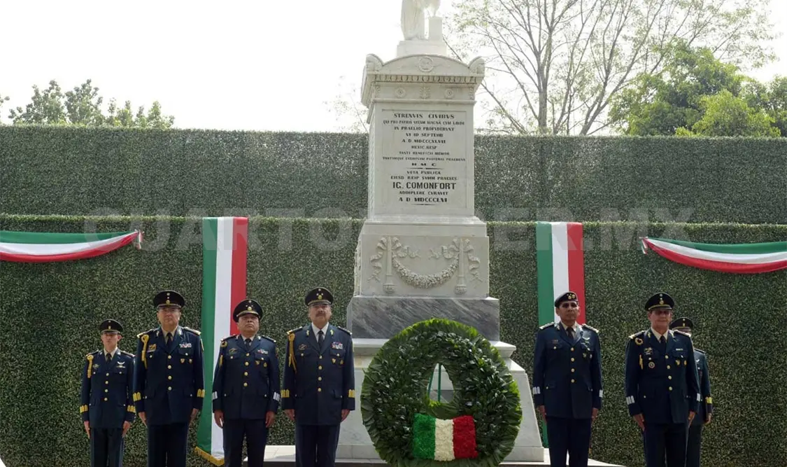 El jefe del Estado Mayor Presidencial, general Roberto Miranda Moreno, encabezó la ceremonia solemne del 168 aniversario de la Batalla de Molino del Rey, en la residencia oficial de Los Pinos.