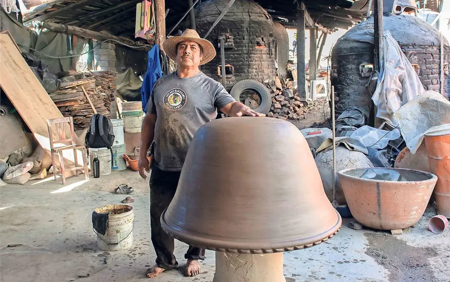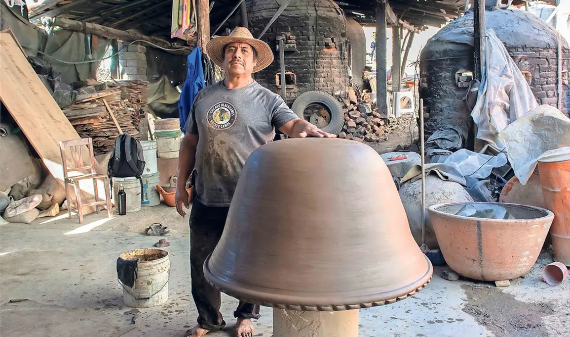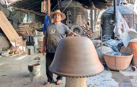 Así también, en Tlaxcala con hornos se reinventa la alfarería. En una cazuela de barro elaborada por Abdías Solano, caben hasta 40 kilos de mole. El alfarero, originario de La Trinidad Tenexyecac, en el estado de Tlaxcala, tiene decenas de piezas de barro de diferentes tamaños preparadas para cocer. En el proceso, que se realiza dos veces, debe unir esfuerzos con su esposa Luisa Juárez e hijos por lo extenuante de las jornadas; juntos se encargan de cargar su horno tradicional y alimentarlo con leña durante un periodo de entre ocho y 12 horas continuas, soportando las altas temperaturas y el humo que oscurece su taller familiar.