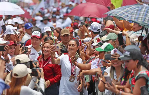 “México va a seguir siendo referencia ante el mundo, vamos a seguir siendo el orgullo de los mexicanos y de las mexicanas. Este 2 de junio salgamos a votar masivamente todas y todos, que nadie se quede en su casa (...) Vamos a gobernar para todos y para todas, pero tenemos un anhelo y una misión como parte de nuestro movimiento, gobernamos para todos y para todas, pero por el bien de todos, primero los pobres, ese es el humanismo mexicano’’, aseveró.