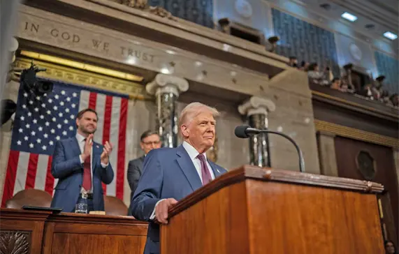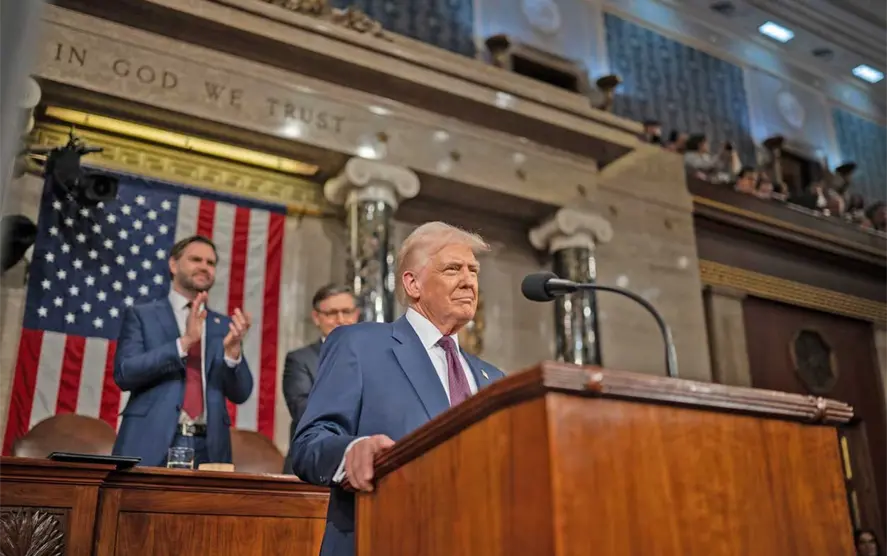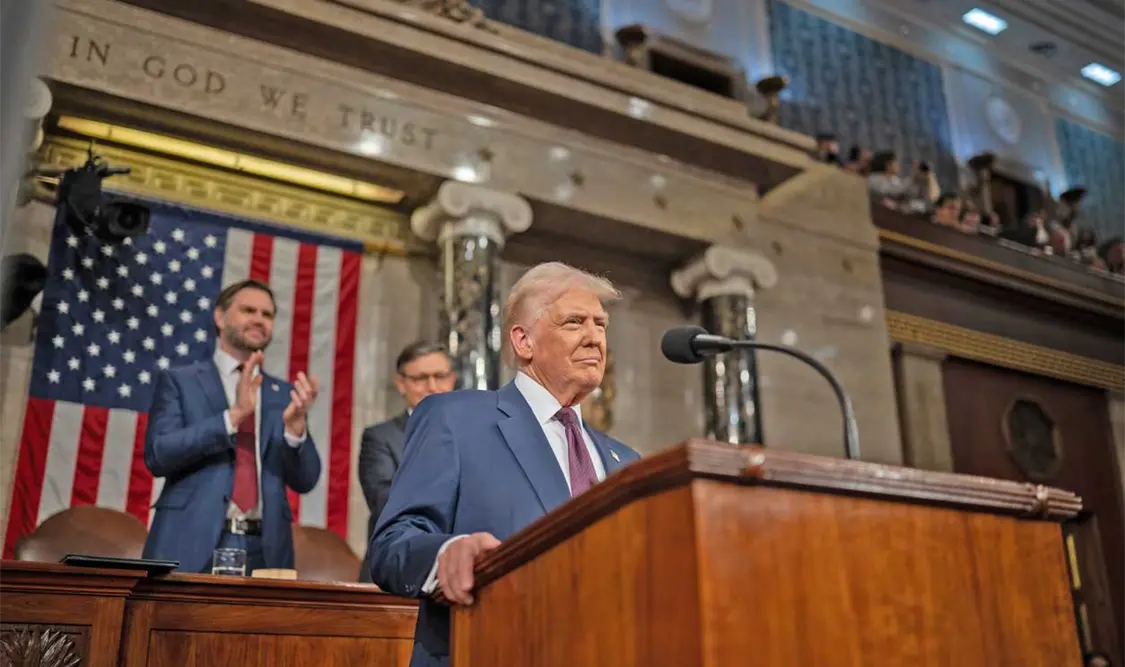 En su primer discurso ante el Congreso, Trump defendió la aplicación de aranceles a México y Canadá.