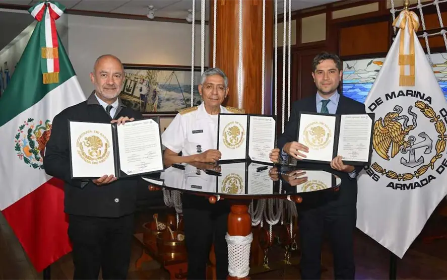 Los titulares de la Secretaría de Marina (Semar), almirante Raymundo Pedro Morales Ángeles; de la Secretaría de Infraestructura, Comunicaciones y Transportes (SICT), Jesús Antonio Esteva Medina; y del Servicio de Administración Tributaria (SAT), Antonio Martínez Dagnino, suscribieron un acuerdo de colaboración para facilitar el intercambio de información entre estas tres dependencias federales para fortalecer el combate al contrabando de mercancías.
