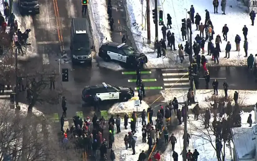 El tiroteo atrajo a una gran multitud de manifestantes. Periodistas en el lugar observaron un área acordonada con un gran número de agentes del ICE en la intersección de la 34 y la avenida Portland.