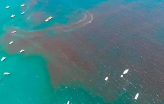 Ayer jueves, trabajadores del mar informaron la presencia de manchas en el mar conocidas como agua mala. También vieron peces muertos en el fondo marino, lo que encendió la alerta entre los habitantes.