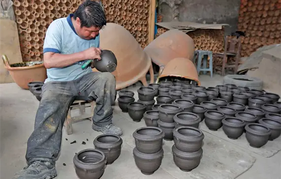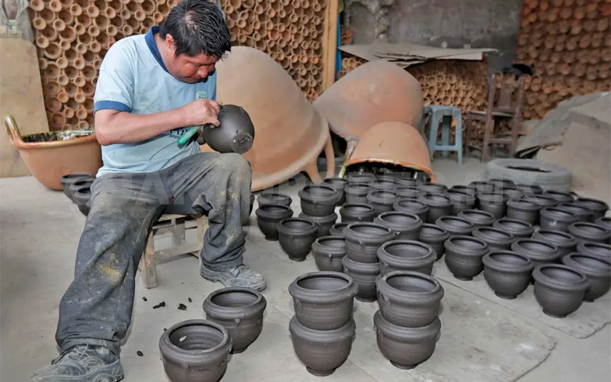 Listo el barro pasa al torno, de pie o de energía eléctrica, donde los alfareros no solo ponen las manos a la obra, sino también el corazón, la pasión, la paciencia y creatividad en cada pieza.