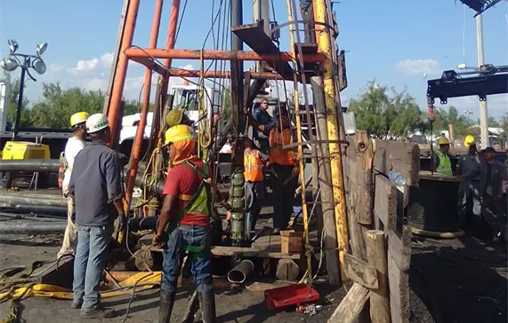 Al cumplirse dos semanas de la inundación en el pozo donde quedaron atrapados, cuadrillas de ingenieros y técnicos trabajan en el perímetro del pozo El Pinabete y la mina Conchas Norte para determinar las condiciones del subsuelo y definir dónde se harán las perforaciones de barrenos.