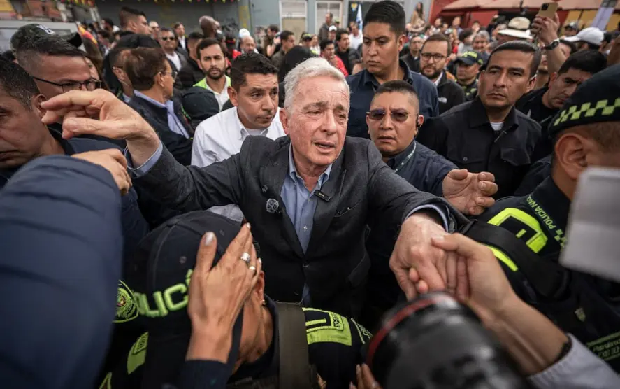 Condenado pero con una boleta de libertad, el influyente expresidente colombiano, Álvaro Uribe Vélez, rindió homenaje póstumo al precandidato presidencial Miguel Uribe Turbay en el mismo parque donde fue baleado en junio durante un mitin y exigió mayor seguridad para los colombianos tras recientes actos violentos.