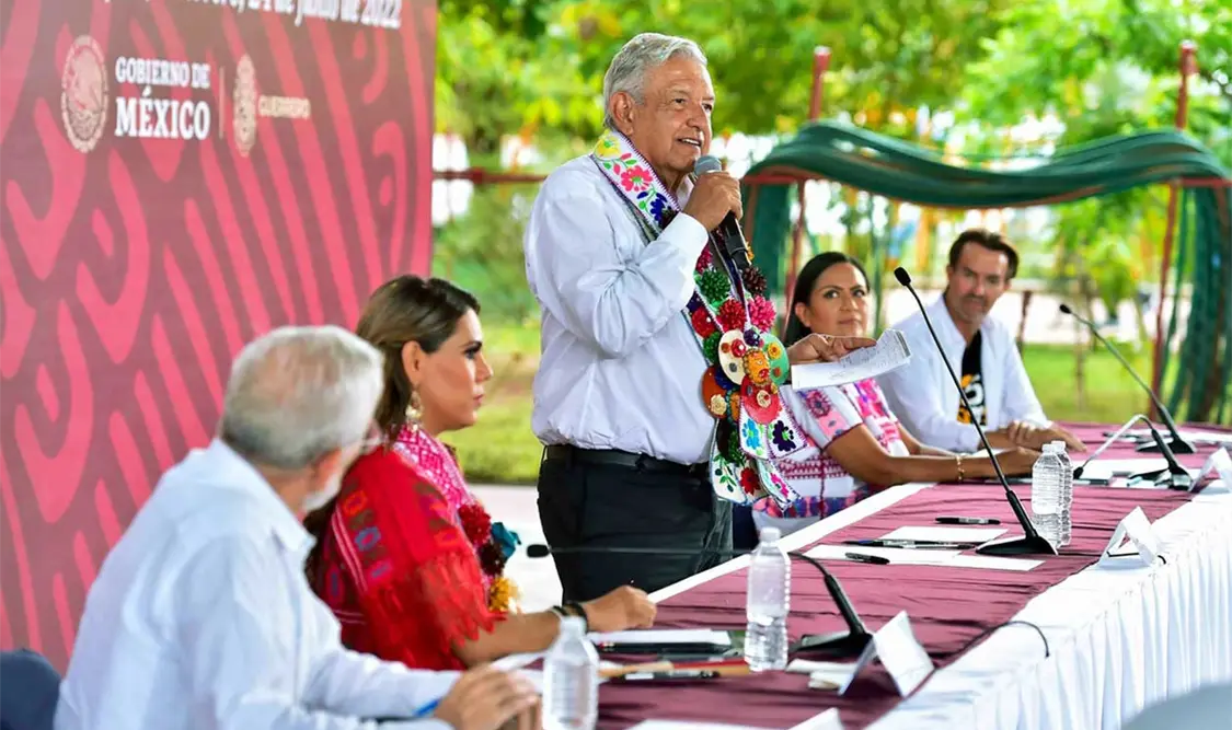 En esta gira de trabajo el presidente supervisó los trabajos de los caminos que se construyen en la Montaña con mano de obra local, similar a lo que se hace en la Sierra de Oaxaca.