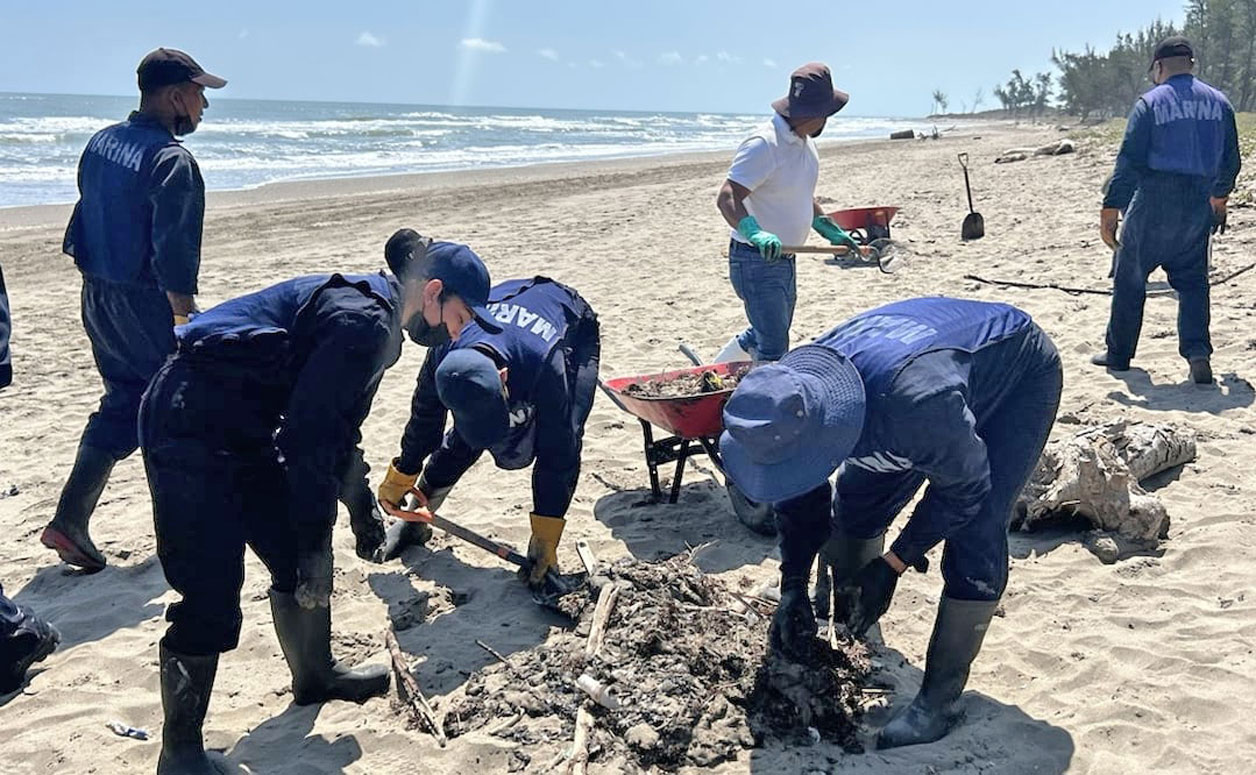 Diversas manchas de hidrocarburo fueron detectadas en playas del puerto de Tuxpan, en el norte de Veracruz, por lo que elementos de la Secretaría de Marina-Armada de México llevaron a cabo acciones de limpieza.