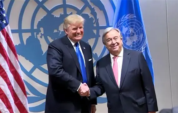 “Estados Unidos apoya a la ONU al 100 %. Aunque a veces discrepe, la apoyo. El potencial de paz con esta institución es enorme”, declaró durante su reunión con el secretario general de la ONU, António Guterres.