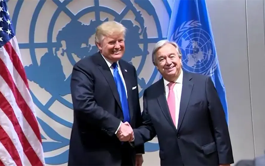 Durante el encuentro cara a cara entre ambos, según los periodistas que acompañaban al presidente, Guterres enfatizó que Estados Unidos es “esencial” para la ONU y elogió la labor de Trump por la paz.