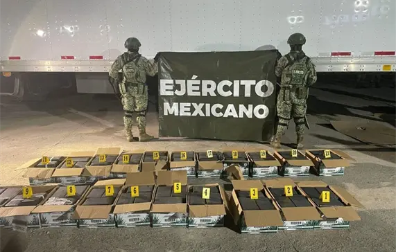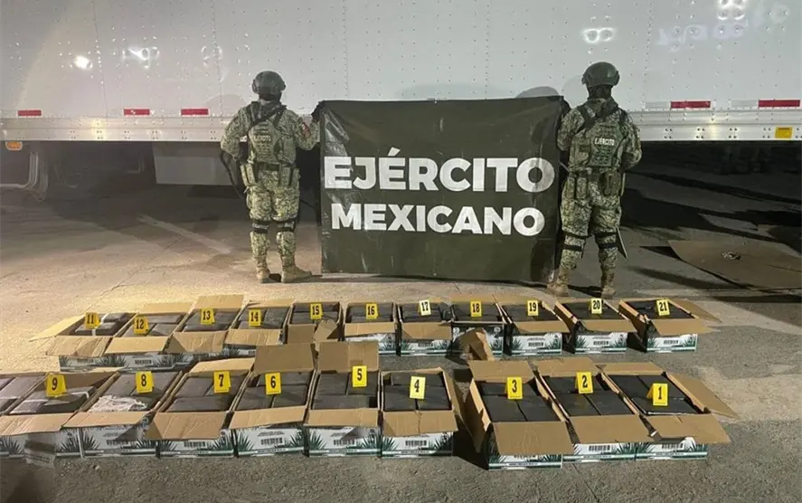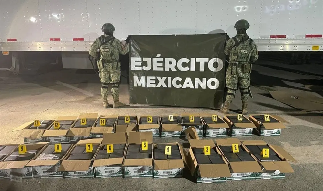 Los uniformados también aseguraron 736.68 kilogramos de marihuana, 441.03 kilogramos de cocaína, 550.46 kilogramos de metanfetamina, 0.02 kg de heroína, 8.56 kilogramos de fentanilo, 99 mil 992 en moneda nacional, 271 vehículos y 26 inmuebles.