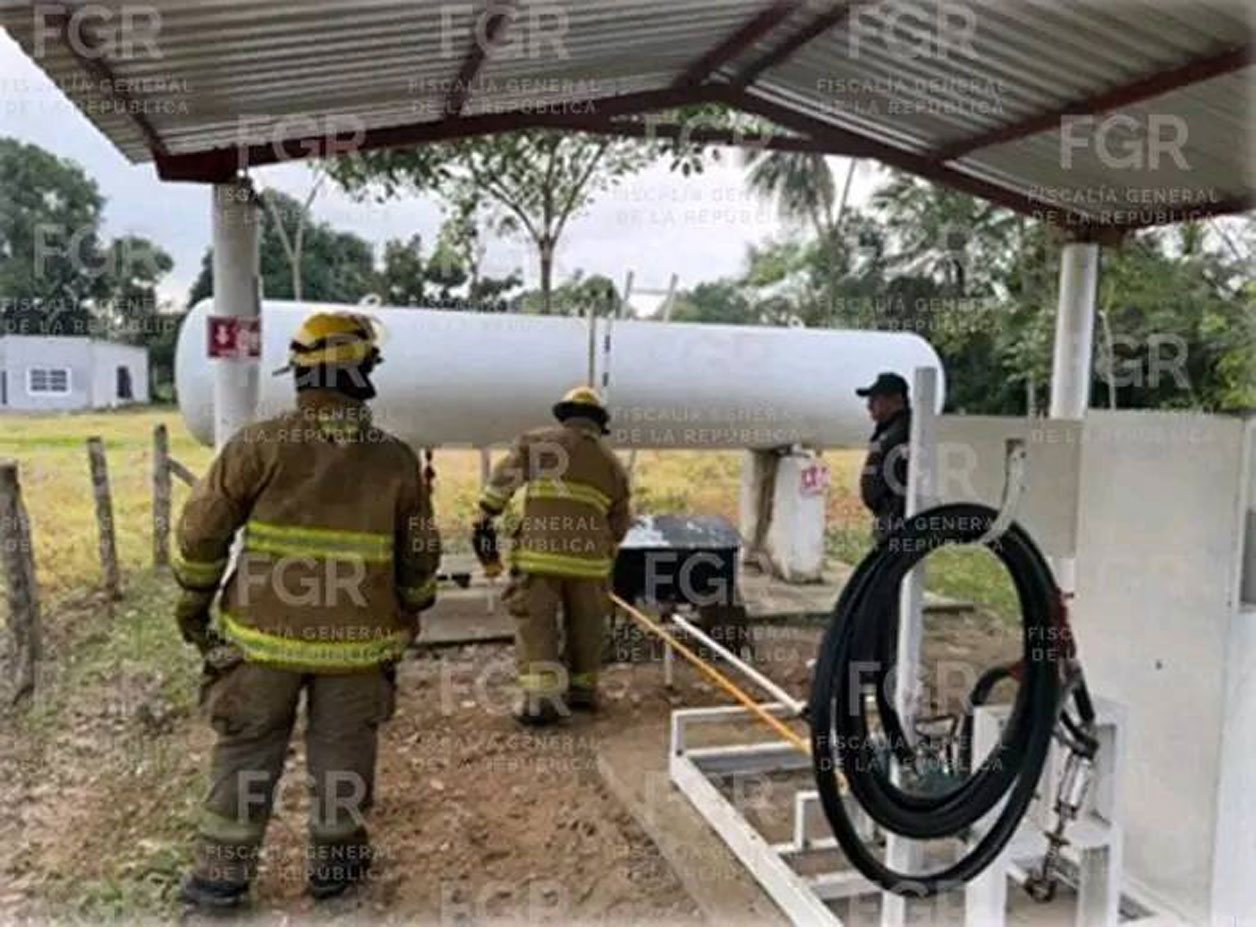 De acuerdo con la Fiscalía, se trata de un predio con apariencia de planta despachadora de gas L.P., la cual funcionaba sin permiso.