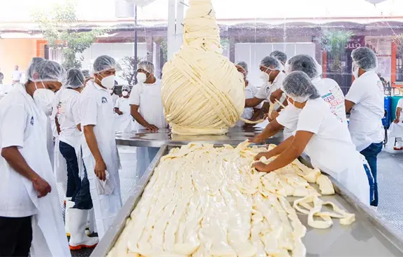 La comunidad de Reyes Etla, en los Valles Centrales de Oaxaca, ganó el Guinness World Record al quesillo más grande del mundo, con un peso de 636.2 kilogramos. Después de 12 horas de trabajo, fue pesado en presencia de Alfredo Arista, representante de Guinness World Record, quien explicó que el premio da una distinción histórica.