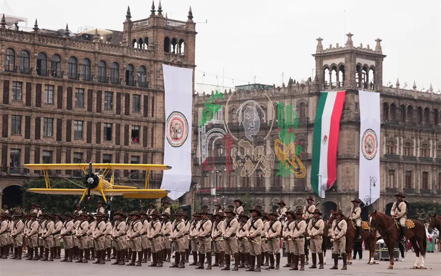 Cerca de tres mil elementos del Ejército, Fuerza Aérea, Guardia Nacional y de Marina, desfilaron este miércoles en el Centro Histórico de la capital del país con motivo del 114 aniversario de la Revolución Mexicana. Se trata del primer acto cívico militar que encabezó la presidenta Claudia Sheinbaum Pardo. Según datos de la Secretaría de la Defensa Nacional, el 40 % de la columna del desfile está compuesta por mujeres y por 38 banderas, 112 charros, 297 niños y niñas, 34 vehículos, 11 aeronaves, cinco aguilillas, 596 caballos y una locomotora.