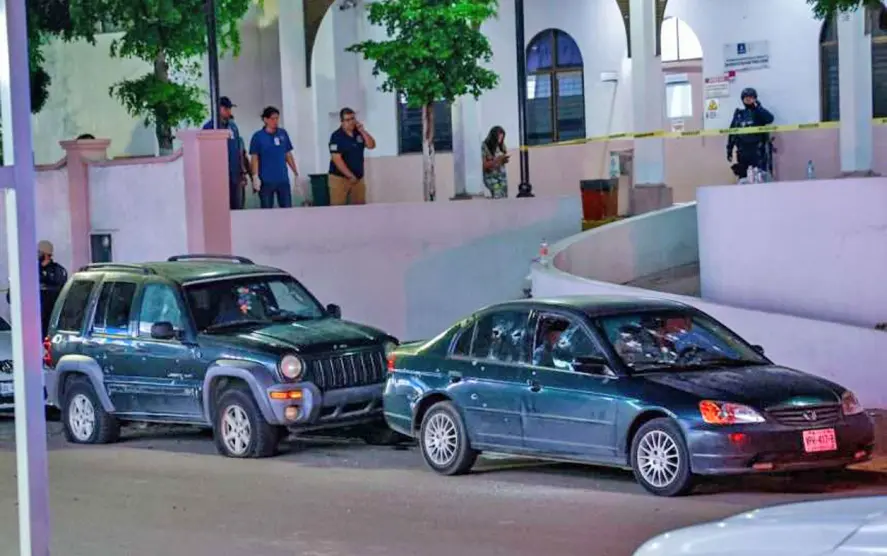 Los impactos de bala alcanzaron a tres vehículos estacionados en la acera de la avenida Álvaro Obregón y decena de ellos se impactaron contra la fachada de la institución médica, ubicada en el segundo cuadro de la capital del estado.