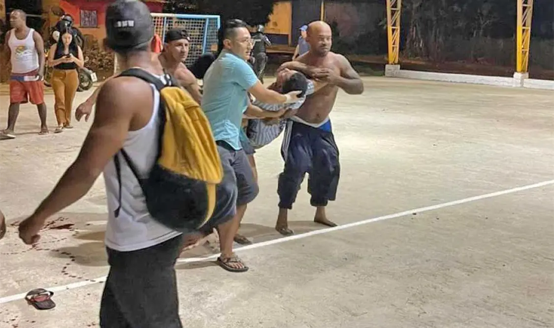 A través de redes sociales circula un video de cámaras de seguridad en el que se ve a la distancia una cancha deportiva en el cantón Camilo Ponce Enríquez, donde juegan varias personas y, de pronto, se escuchan varios disparos y se observa a gente correr despavorida.