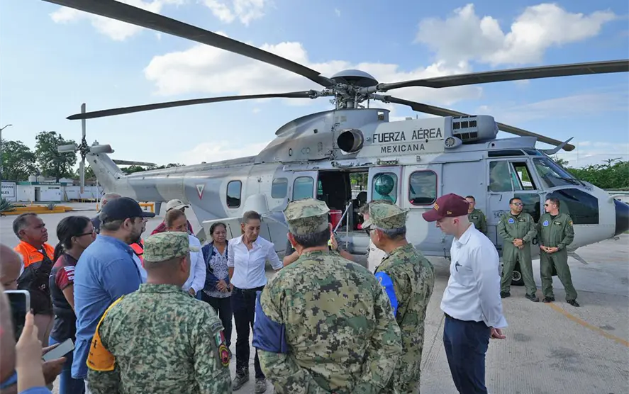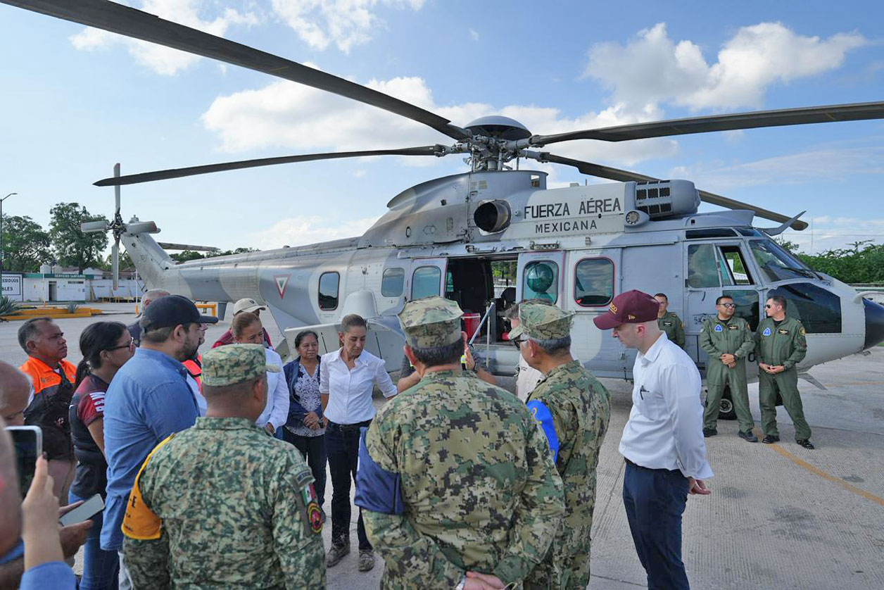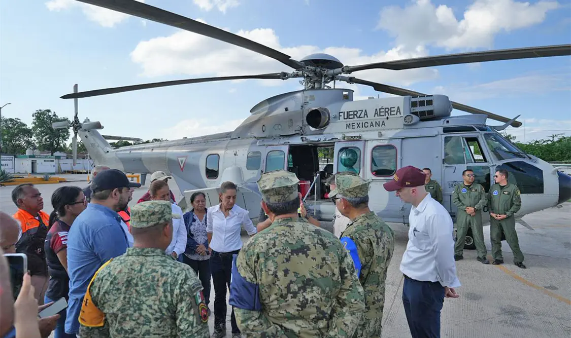 En el Salón Tesorería, la titular del Ejecutivo federal destacó los puentes aéreos para las comunidades incomunicadas y la definición de los municipios prioritarios para atenderlos.