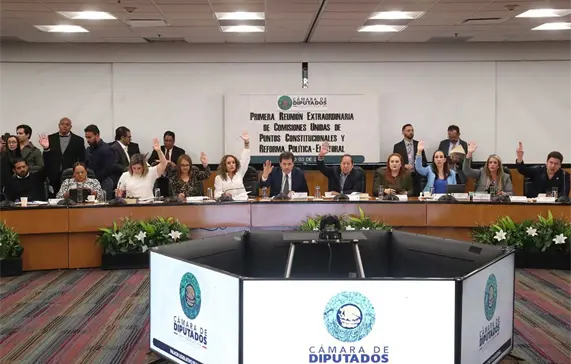 Los diputados de las comisiones unidas de Puntos Constitucionales y de Reforma Político-Electoral de la Cámara de Diputados aprobaron por unanimidad de 62 votos a favor la minuta de la reforma constitucional para prohibir la reelección y el nepotismo en los términos del Senado, es decir, con la modificación para que entre en vigor hasta 2030.