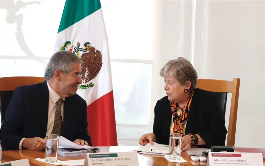 La canciller Alicia Bárcena sostuvo una reunión con Juan Ramón de la Fuente, próximo titular de la Secretaría de Relaciones Exteriores (SRE), para lograr una transición a favor de la política exterior.