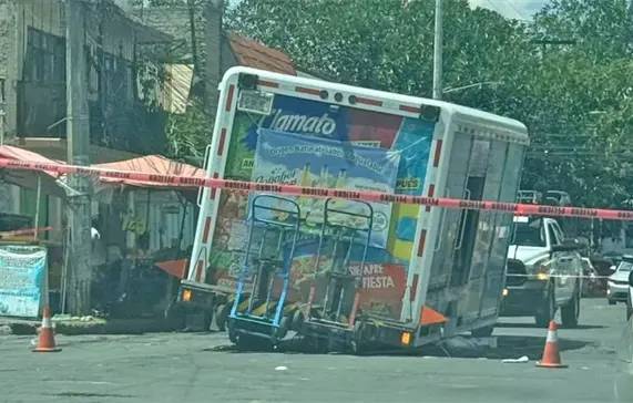 Un camión repartidor de refrescos quedó atorado en un socavón que abrió a su paso en calles de la alcaldía Gustavo A. Madero. El incidente de este sábado se registra a una semana de que otro camión repartidor de refresco cayera en un enorme socavón en la colonia Renovación, alcaldía Iztapalapa. No se reportan heridos tras el incidente registrado en la alcaldía Gustavo A. Madero.