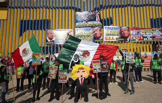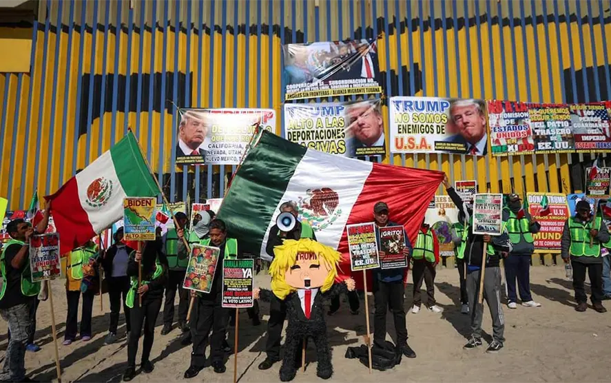 En el muro los deportados también ataron carteles con leyendas como: “No somos el patio trasero de Estados Unidos”, “Cooperación sí, subordinación no” y “Fuera Trump”. Al frente de los mismos ondearon banderas de México para pedir respeto a la comunidad mexicana.