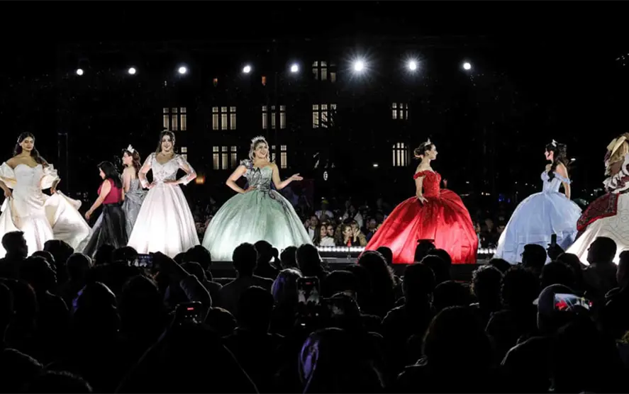 El Monumento a la Revolución se convirtió la noche del pasado viernes en una pasarela de modas. Pese a la lluvia, modelos desfilaron portando vestidos de novia y XV años. La Gala Chilanga continuará hasta el 12 de abril de 17:30 a 21:00 horas en la Plaza de la República.