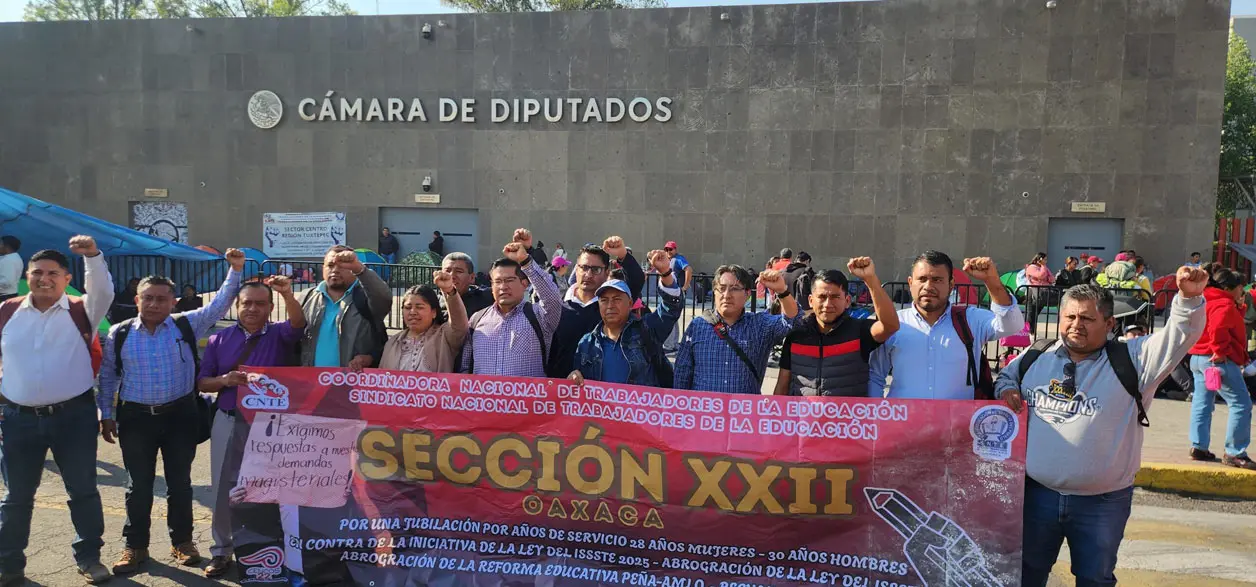 “Nuestra exigencia es directamente con la presidenta. De nada serviría sentarnos ahorita con los legisladores si realmente lo que estamos exigiendo es una mesa directamente con la presidenta, Secretaría de Gobernación, el secretario de Educación Pública y el director general del Issste”, refirió Yenny Aracely Pérez Martínez, secretaria general de la Sección XXII.