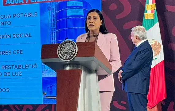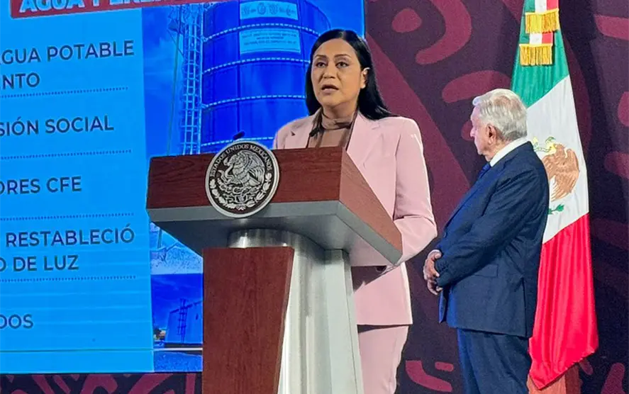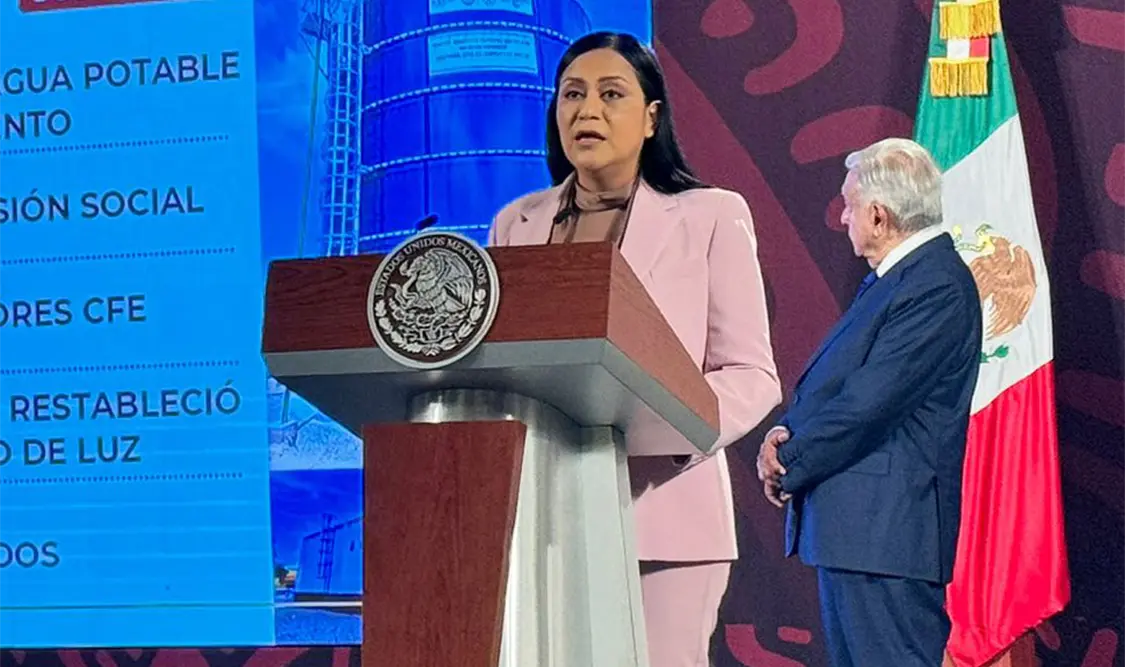 En el Salón Tesorería, la titular de Bienestar destacó el Plan General de Reconstrucción y Apoyo a la Población de Acapulco y Coyuca de Benítez por el huracán Otis.