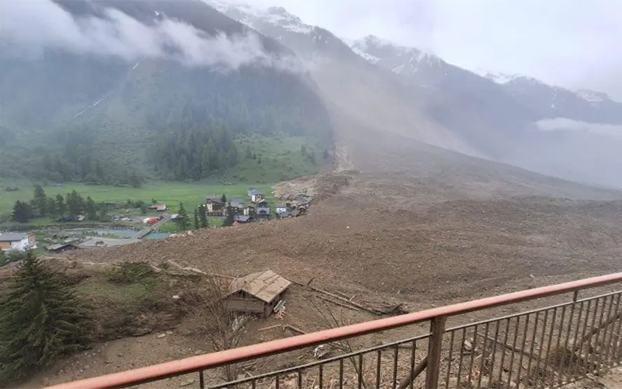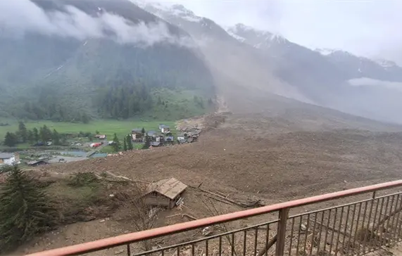 La fuerza y la velocidad del deslizamiento es tal que siguió sobre la otra montaña opuesta del valle.