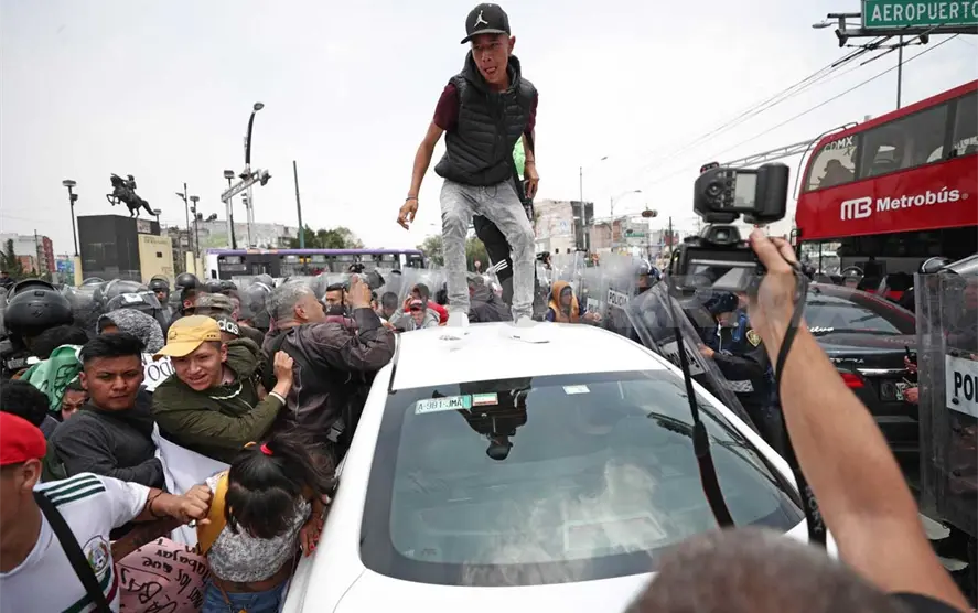 Elementos de la Secretaría de Seguridad Pública y comerciantes de Tepito se enfrascaron en un conato de bronca sobre Paseo de la Reforma y Eje 1 Norte, luego de que un grupo de ambulantes marchara para exigir de manera pacífica a las autoridades capitalinas regular los operativos contra el narcomenudeo.