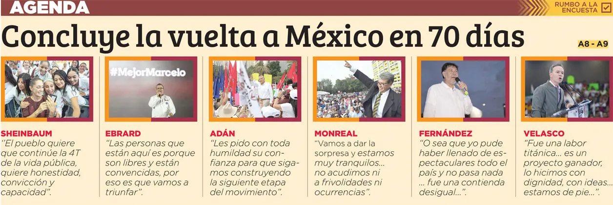“¡Vamos juntos! Nos necesitamos todos. Hemos cumplido al pueblo de México. Hemos cumplido la meta y la encomienda. No les vamos a fallar. Hemos trabajado codo a codo con ustedes para construir la continuidad de la Cuarta Transformación”, manifestó.
