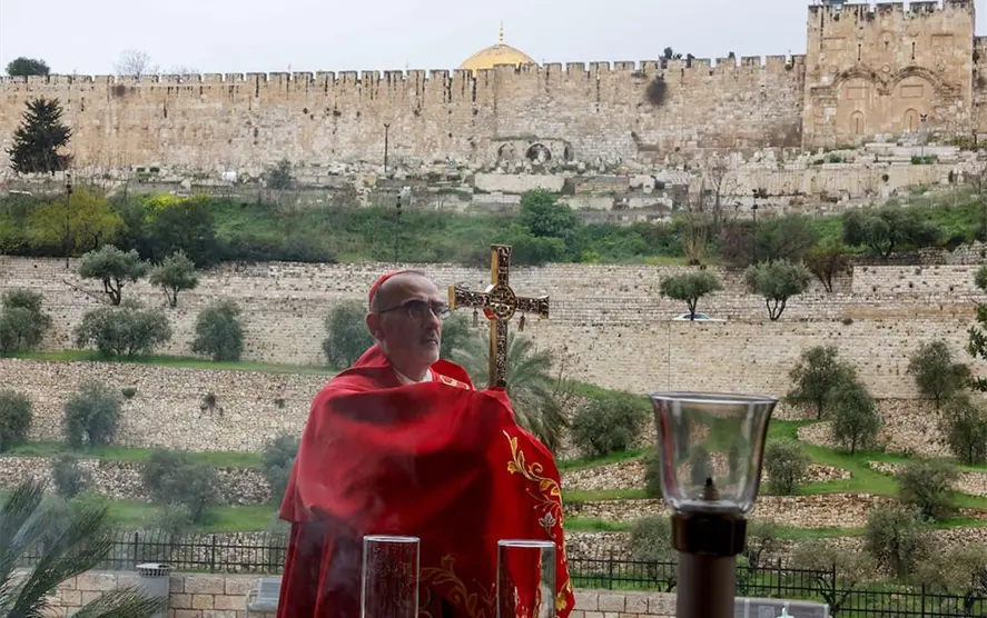 “Hoy Jesús llora una vez más por Jerusalén. Llora por esta ciudad, que sigue siendo signo de esperanza y dolor, de gracia y sufrimiento. Llora por esta Tierra Santa, aún incapaz de reconocer el don de la paz”, dijo la máxima autoridad católica en Tierra Santa, el patriarca latino, Pierbattista Pizzaballa.