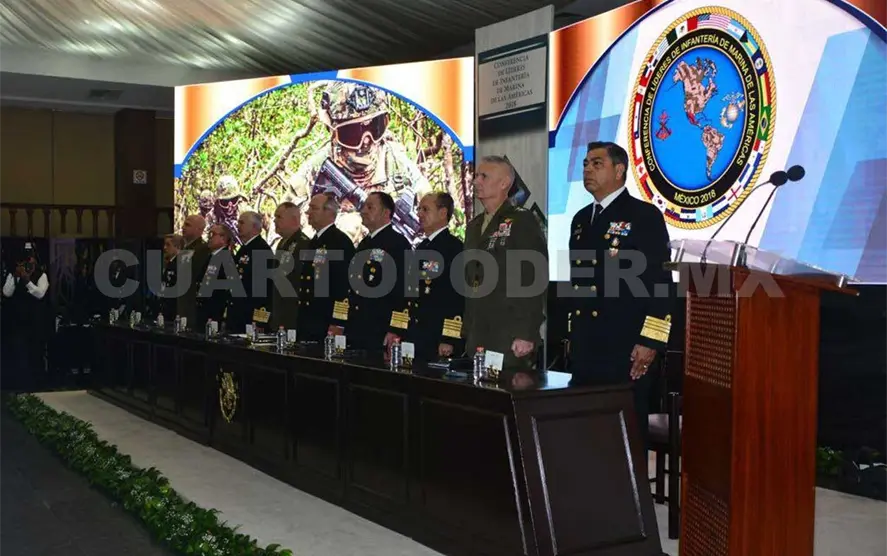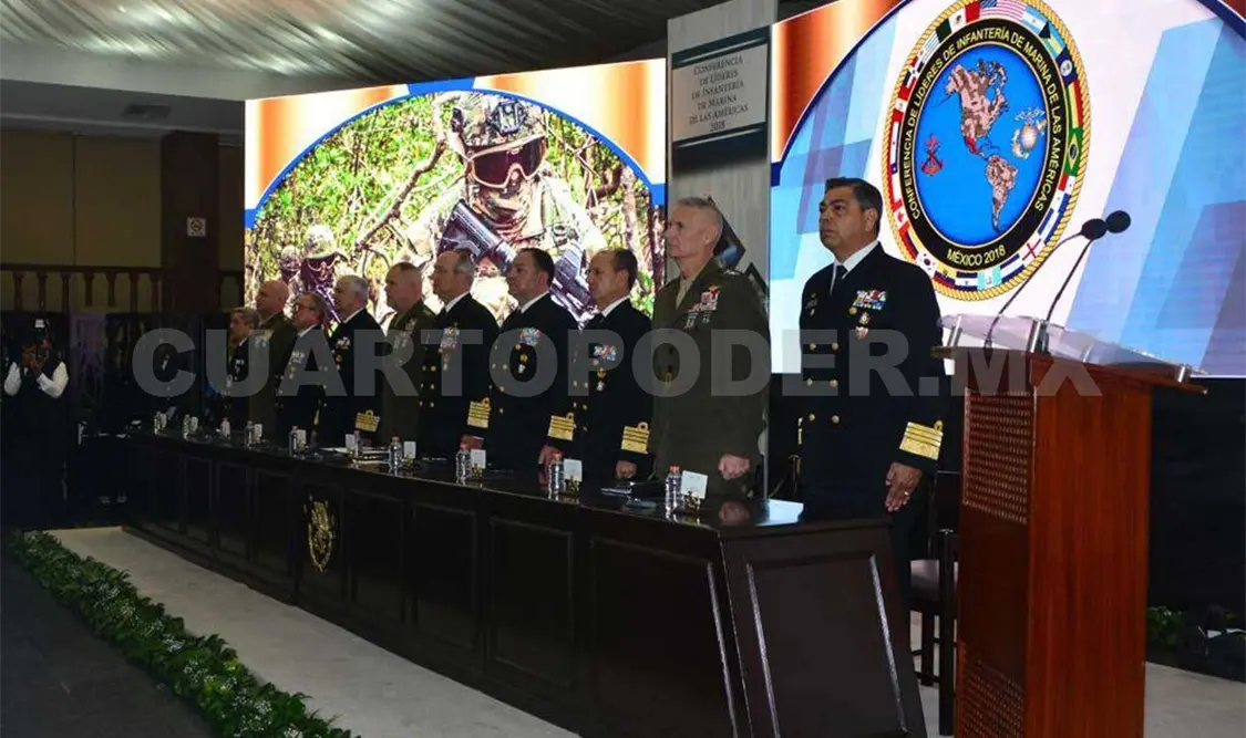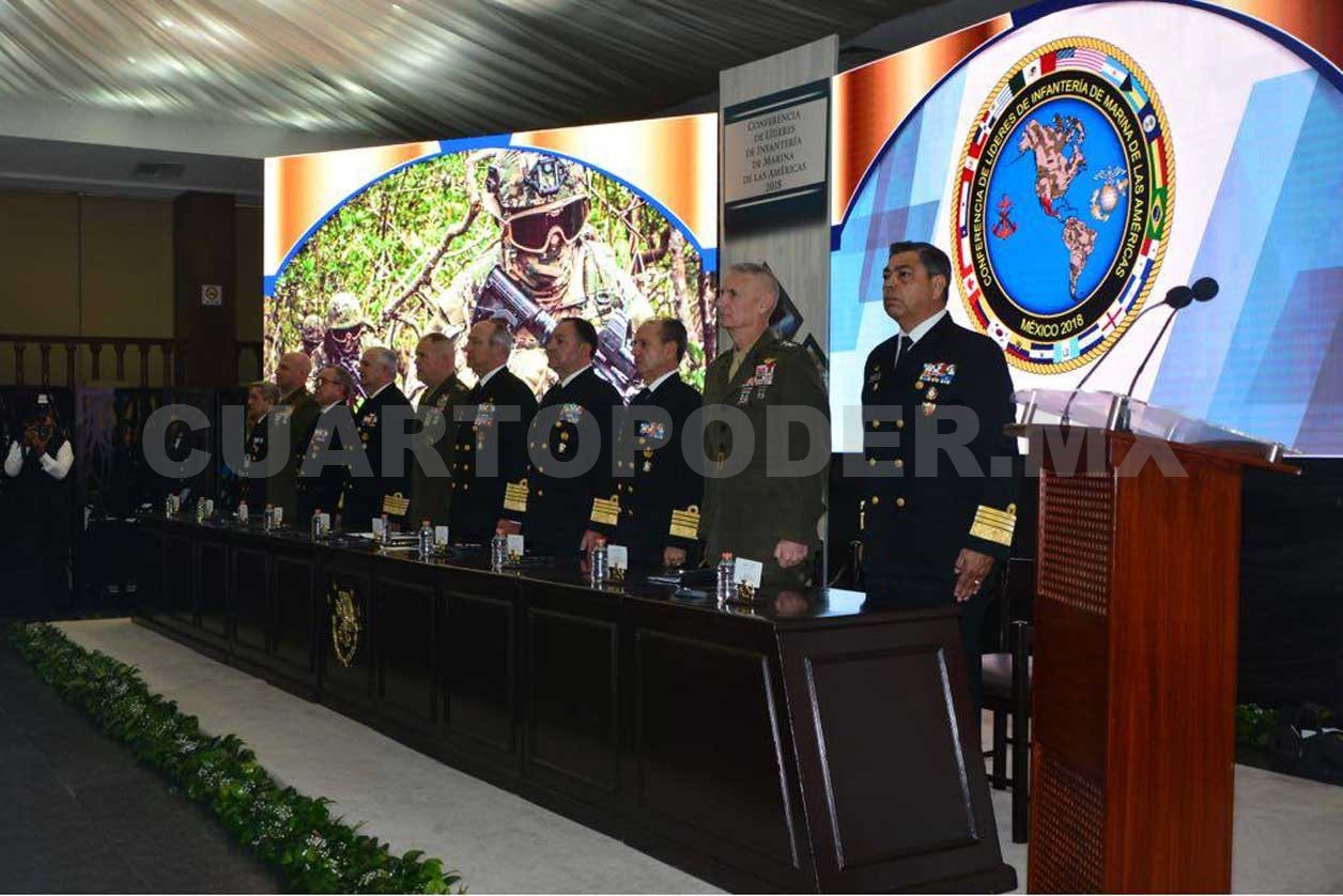 El secretario de Marina Vidal Francisco Soberón inauguró la séptima conferencia de Líderes de Infantería de Marina de las Américas, en la que armadas de 19 países, entre ellos Estados Unidos, Inglaterra y Corea del Sur, abordarán temas de seguridad, narcotráfico y del crimen organizado transnacional.