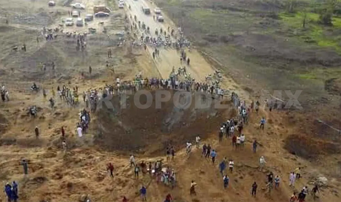 En las imágenes, se puede ver un gran hoyo en el suelo.