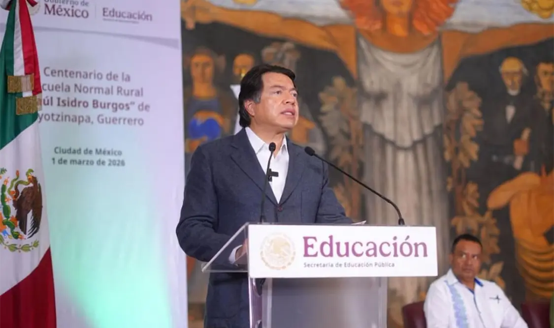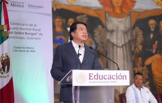 El secretario de Educación Pública, Mario Delgado Carrillo, encabezó la ceremonia de conmemoración por los 100 años de la Escuela Normal Rural “Raúl Isidro Burgos” de Ayotzinapa, Guerrero, acto en el que expresó su “respeto y solidaridad” con los 43 estudiantes desaparecidos en septiembre de 2014.
