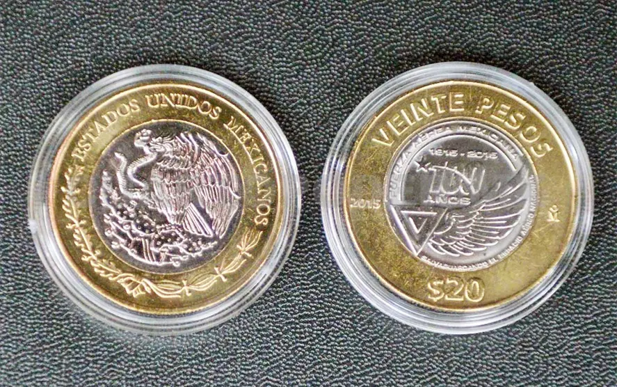 El Banco de México (Banxico) puso en circulación una moneda de 20 pesos conmemorativa del Centenario de la Fuerza Aérea Mexicana (1915-2015), la cual es de curso legal y puede utilizarse para realizar cualquier tipo de pago.