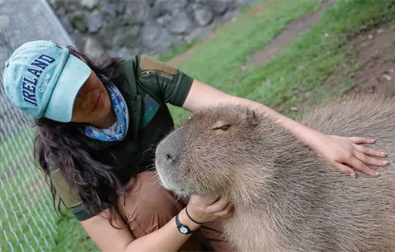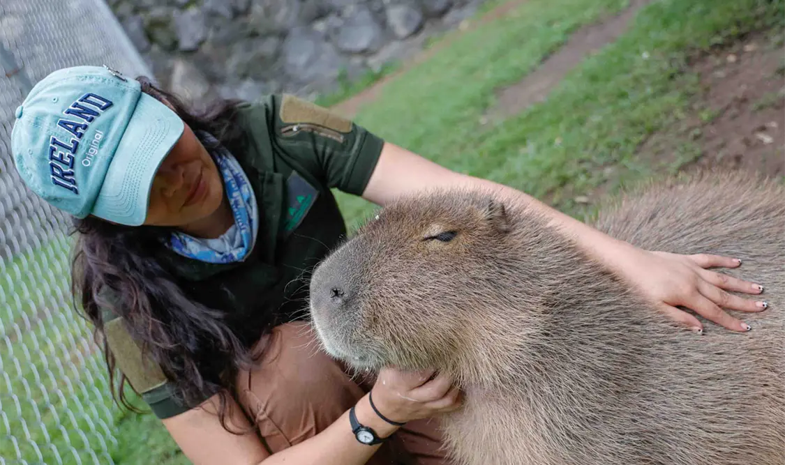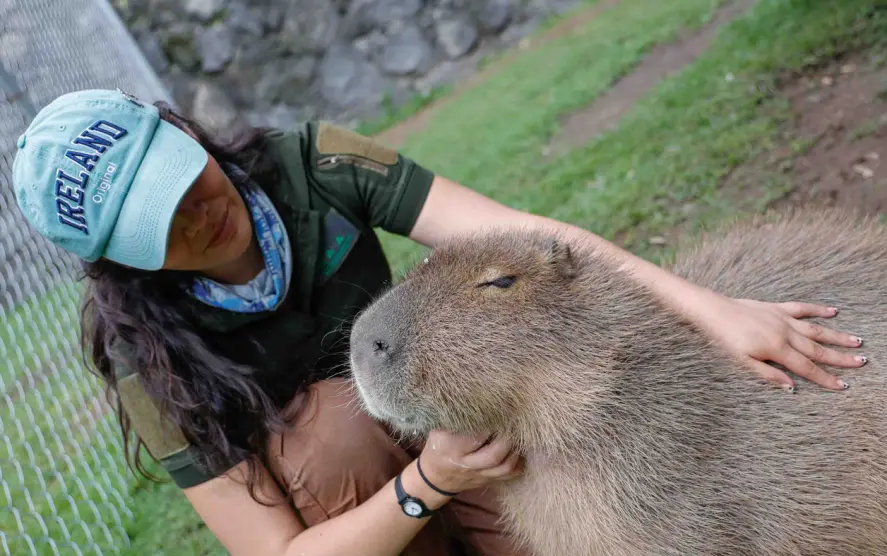 La experiencia animal con capibaras es a las 12:00 horas, con un costo de 50 pesos, el acceso es para 10 personas y es para todas las edades.