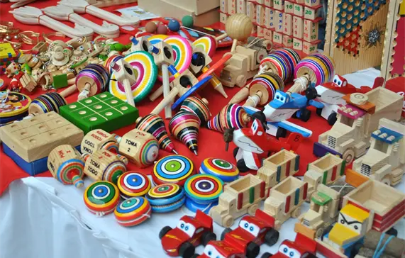 Entre los juguetes más representativos destacan las pirinolas, dominós, dados, carritos, yoyos, trompos, baleros, casitas de muñecas, títeres, tablas mágicas, sonajas y rompecabezas. Estas piezas artesanales tienen beneficios para los infantes, ya que favorecen la imaginación y ayudan a la concentración, cada pieza tiene su grado de complejidad.