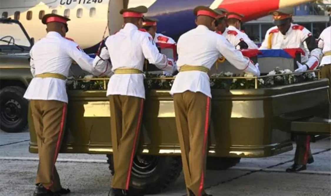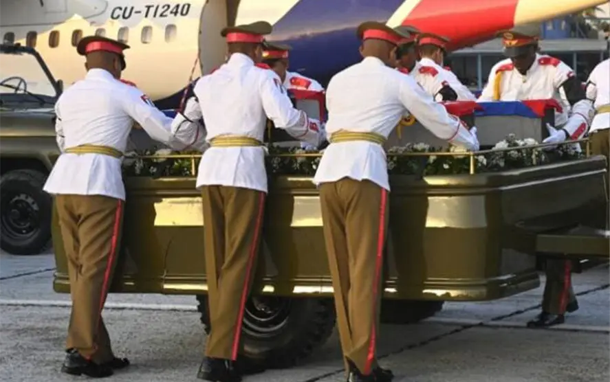 Tras llegar al aeropuerto internacional José Martí de La Habana, las 32 cajas mortuorias culminaron, dos horas después de su arribo, un recorrido en vehículos militares hasta el Ministerio de las Fuerzas Armadas Revolucionarias (Minfar).