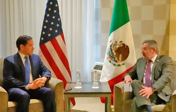 Juan Ramón de la Fuente, titular de la Secretaría de Relaciones Exteriores (SRE), sostuvo un encuentro con Marco Rubio, secretario del Departamento de Estado de Estados Unidos.