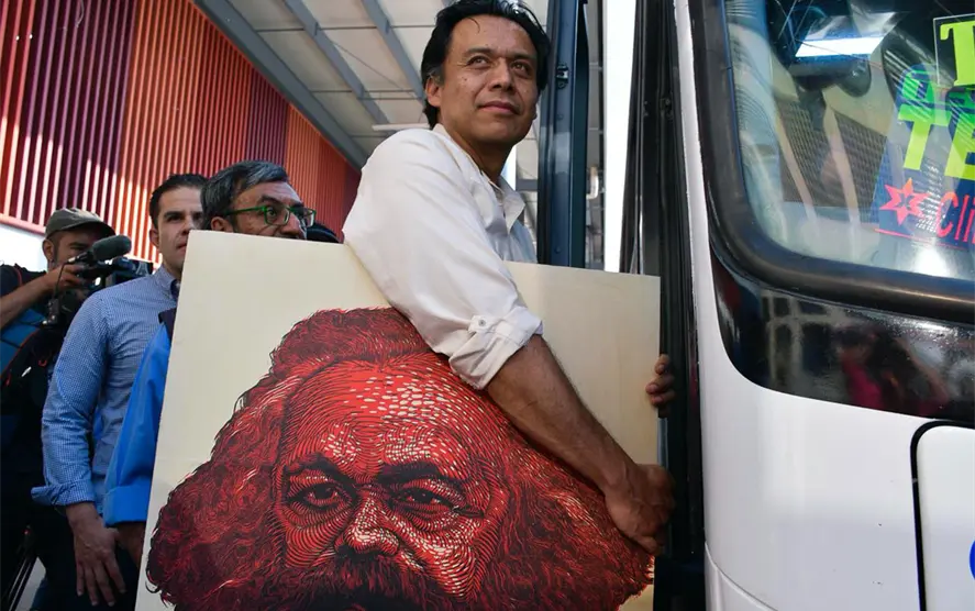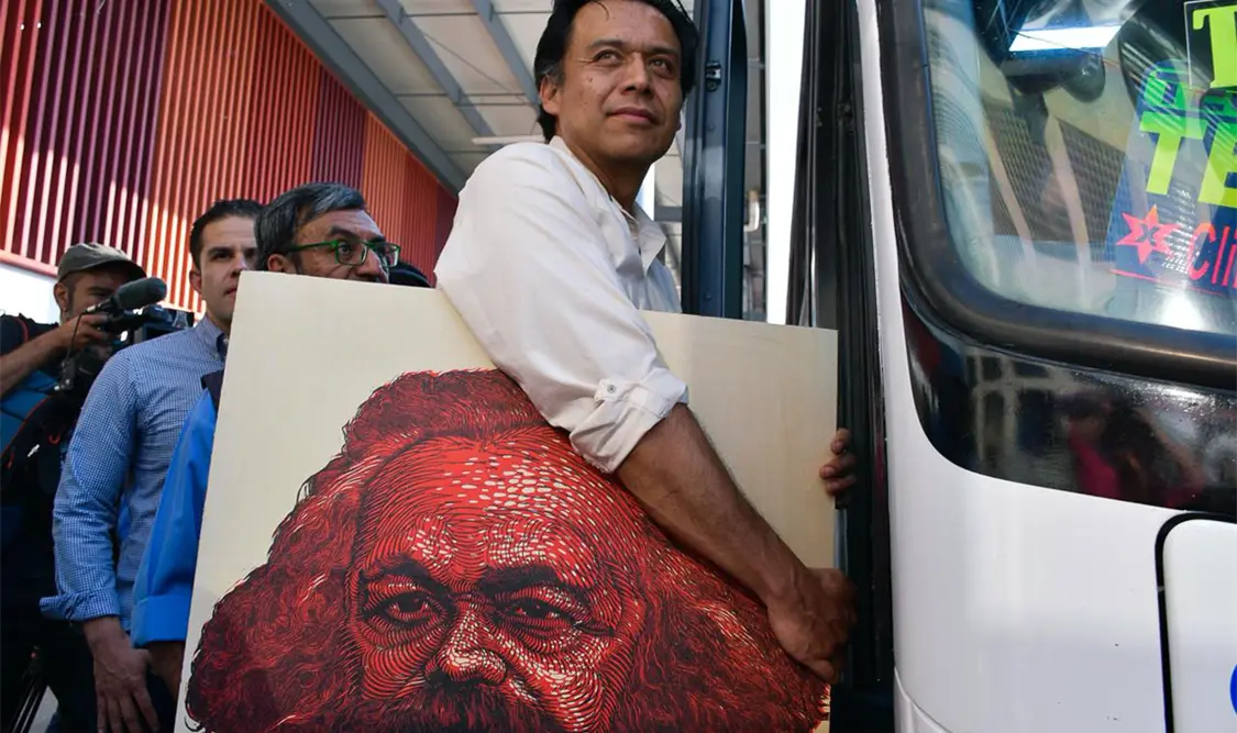 Al salir de su oficina, ubicada en Av. Universidad 1200, llevaba en mano los cuadros que adornaban su espacio, uno de ellos del filósofo y economista Karl Marx.