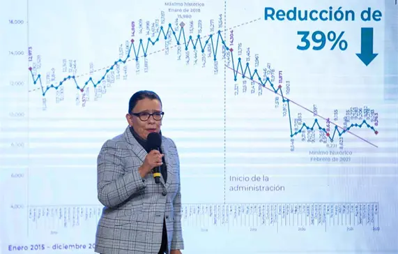 “El feminicidio en enero de 2022 bajó 32 %, esto con respecto al máximo histórico de agosto de 2021, donde se llevan cinco meses a la baja”, destacó.
