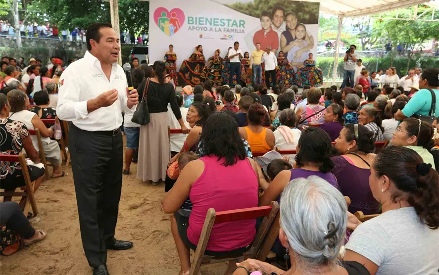 Acompañado por el gobernador Manuel Velasco Coello, el funcionario recordó que la plataforma de programas sociales ha beneficiado a 765 mil familias a través de Prospera, a 320 mil mujeres con seguro de vida para jefas de familia y a 240 mil adultos mayores con una pensión.