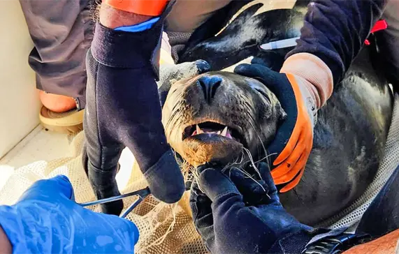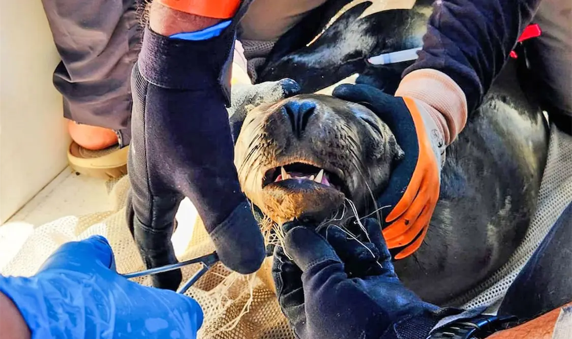 El operativo contó con la participación de tres inspectores federales de la Profepa con amplia experiencia y conocimiento en desenmalle de mamíferos marinos.