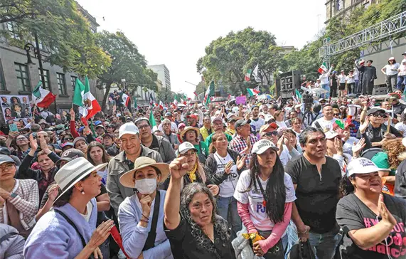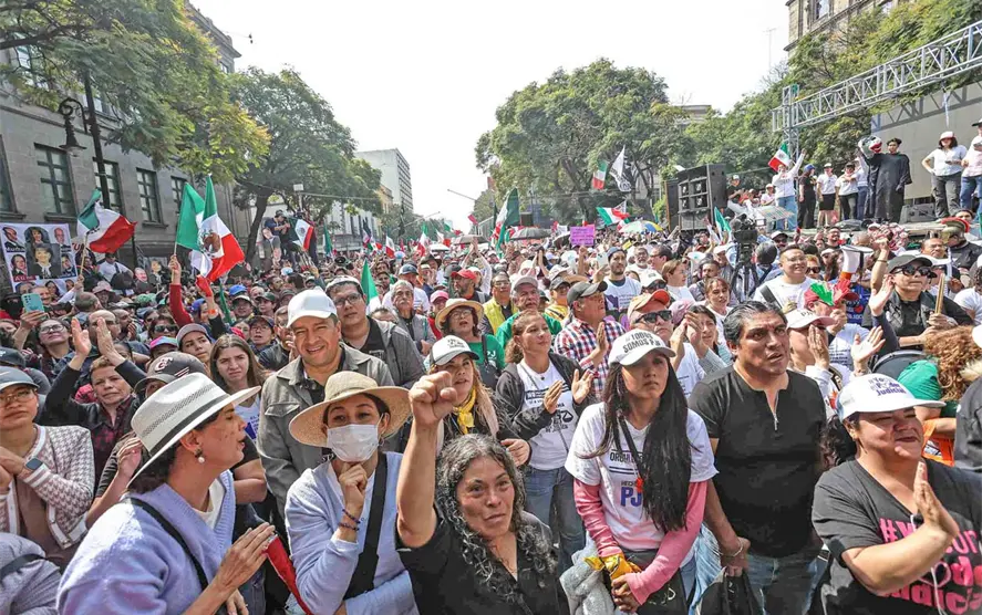 Desde temprano, jueces y trabajadores de base se dieron cita en el cruce de las calles Venustiano Carranza y Pino Suárez con banderas de México y carteles en apoyo a los ministros y para reiterar su rechazo a la reforma judicial.
