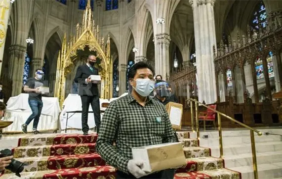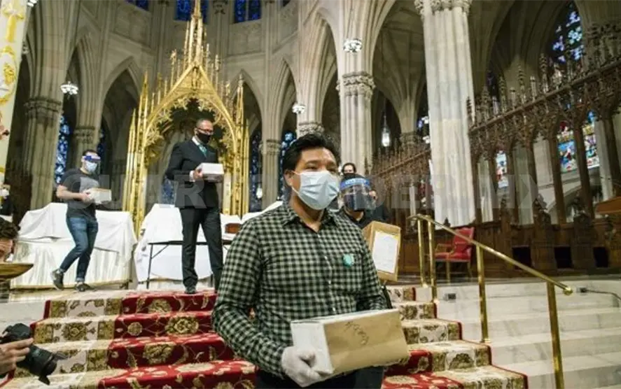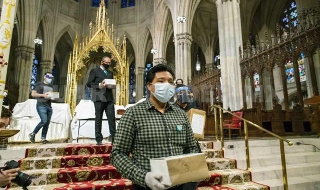 A la breve ceremonia, oficiada en español por el cardenal de la Arquidiócesis de Nueva York, Timothy Dolan, asistieron un centenar de familiares que visiblemente entristecidos y ataviados con máscaras y guantes rezaban frente a las 250 urnas que contenían las cenizas de las víctimas de la pandemia, situadas en el majestuoso altar de la iglesia y cubiertas con una tela blanca.