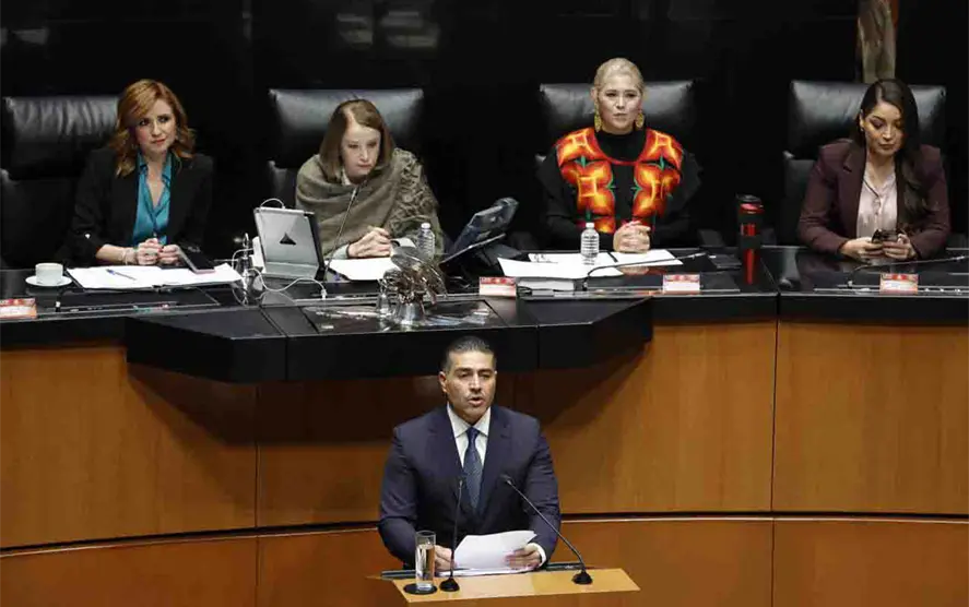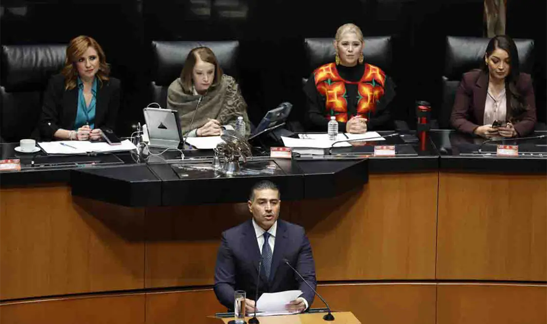Un poco antes, al ingresar al salón de plenos, senadoras y senadores recibieron el clásico besamanos a García Harfuch, también senador con licencia.
