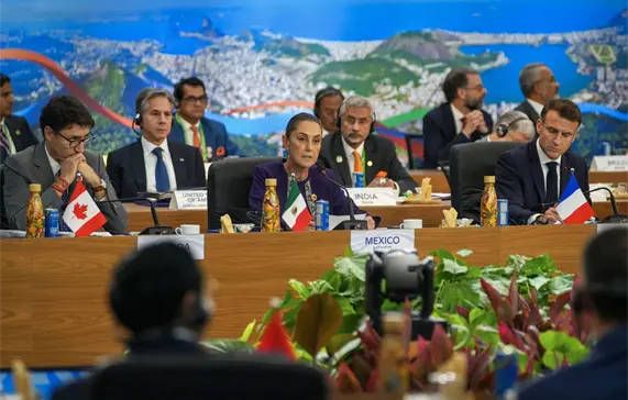 Ante las y los representantes de los países miembros del G20, reiteró que al convertirse, hace seis semanas, en la primera mujer presidenta de México, las mujeres mexicanas también llegaron al máximo puesto de la nación.